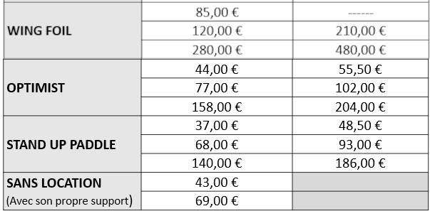 Tarifs Voile Loisir