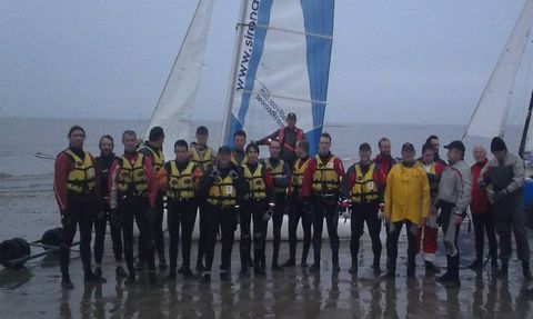C’est à l’aurore, sous un ciel très chargé, qu’une voileuse et 26 voileux motivés, de 17 à 70 ans, dont 2